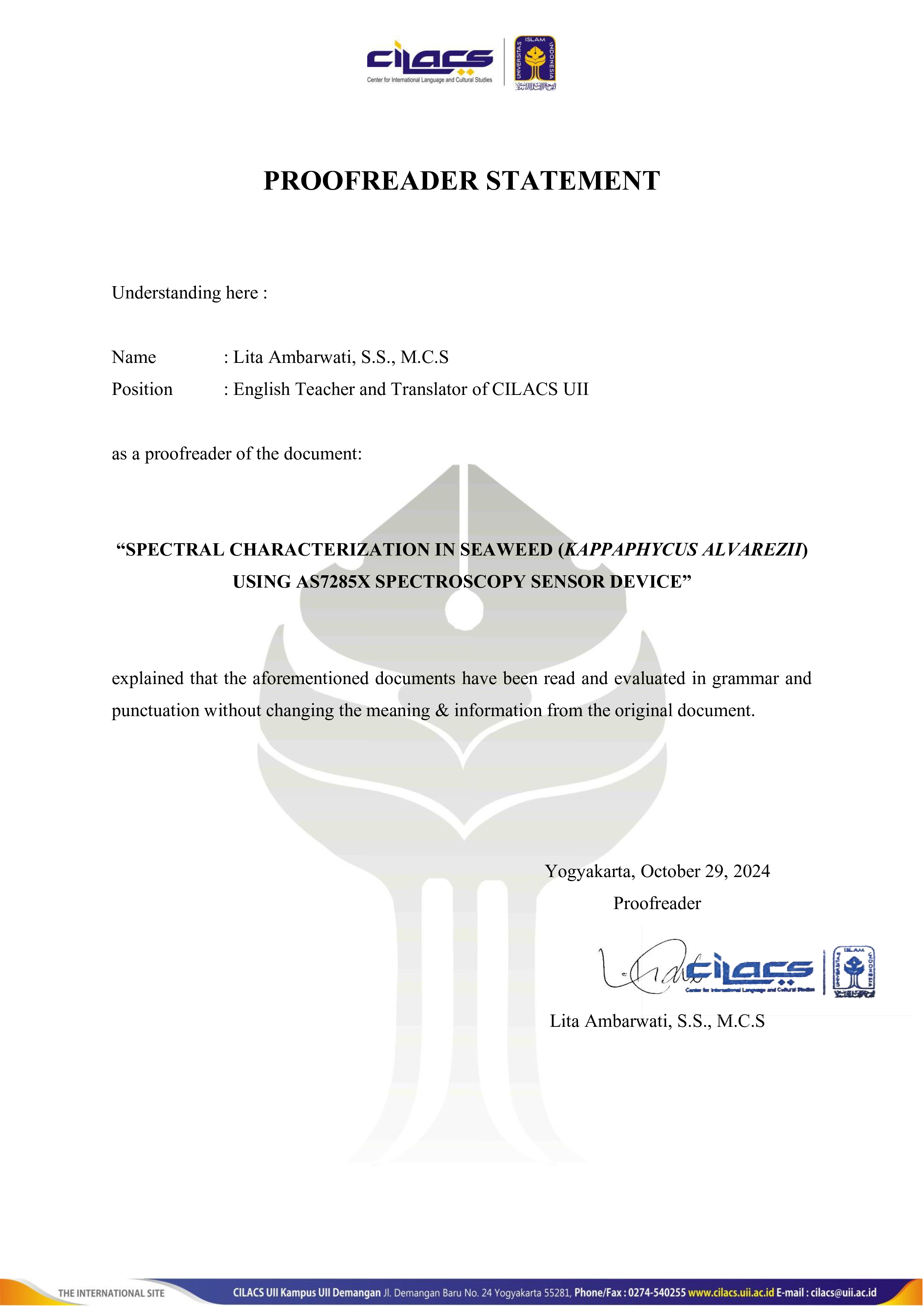 Spectral Characterization in Seaweed, Kappaphycus alvarezii, using AS7285x Spectroscopy Sensor Device