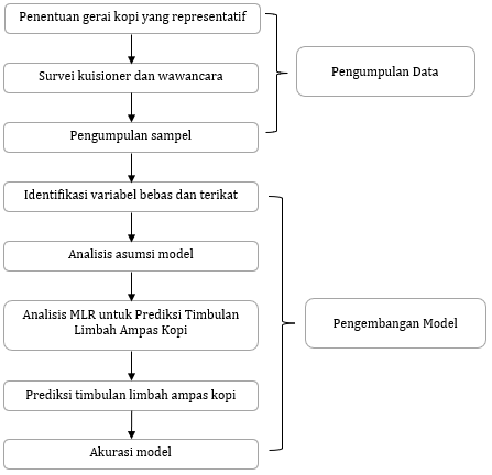 @article{JIL57995, author = {Sri Mulyani and Yulia Fitri and Selvia Selvia and Nofia Rahmadani and Dinda Lestari and Wahyu Meka}, title = {Prediksi Potensi Timbulan Limbah Ampas Kopi sebagai Sumber Penghasil Senyawa Bioaktif di Kota Pekanbaru}, journal = {Jurnal Ilmu Lingkungan}, volume = {22}, number = {6}, year = {2024}, keywords = {Ampas kopi; Gerai kopi; Prediksi; Multiple Linear Regression; Stepwise; SPSS}, abstract = {Prediksi yang akurat dari jumlah timbulan limbah ampas kopi sangat penting untuk pemanfaatan dan pengelolaannya. Metode pemodelan sering digunakan untuk memprediksi timbulan sampah, akan tetapi belum ada penelitian yang membuat suatu model untuk memprediksi timbulan limbah ampas kopi, khususnya di kota Pekanbaru. Model dalam penelitian ini diusulkan untuk membangun pengaruh antara timbulan limbah ampas kopi dan parameter meteorologi (suhu, curah hujan dan kelembaban), jumlah cup terjual per hari, ukuran cup yang digunakan, jenis dan merek kopi, serta metode penyeduhan kopi. Multiple Linear Regression (MLR) metode stepwise digunakan untuk mengembangkan model prediksi timbulan limbah ampas kopi di kota Pekanbaru. Survei kuisioner dan wawancara dilakukan terhadap 90 gerai kopi yang ada di sejumlah lokasi di kecamatan kota Pekanbaru. Pengambilan sampel dilaksanakan berturut-turut selama 8 hari berdasarkan SNI 19-3964-1994. Hasil penelitian ini menunjukkan bahwa sampah yang dihasilkan oleh gerai kopi bervariasi. Rata-rata limbah ampas kopi yang dihasilkan gerai kopi adalah 585,71% gram/hari. Model prediksi yang digunakan menghasilkan nilai rata-rata yang sama dengan rata-rata timbulan limbah ampas kopi hasil observasi, sehingga dapat disimpulkan bahwa seluruh model layak digunakan untuk prediksi timbulan limbah ampas kopi. Keakuratan hasil prediksi di uji dengan menggunakan nilai MAPE, MAD dan RMSE yang menunjukkan bahwa model D merupakan model terbaik. Koefisien determinasi (R2) dari model D sebesar 0,836 untuk timbulan limbah ampas kopi dengan menggunakan variabel bebas yang dipilih (ukuran cup, jumlah cup, curah hujan dan kelembaban).}, pages = {1412--1423} doi = {10.14710/jil.22.6.1412-1423}, url = {https://ejournal.undip.ac.id/index.php/ilmulingkungan/article/view/57995} }