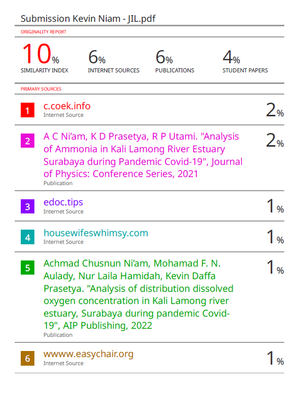 JURNAL ILMU LINGKUNGAN ISSN:1829-8907 by Graduate Program of Environmental Studies, School of Postgraduate Studies is licensed under a Creative Commons Attribution 4.0 International License. Based on a work at www.undip.ac.id.