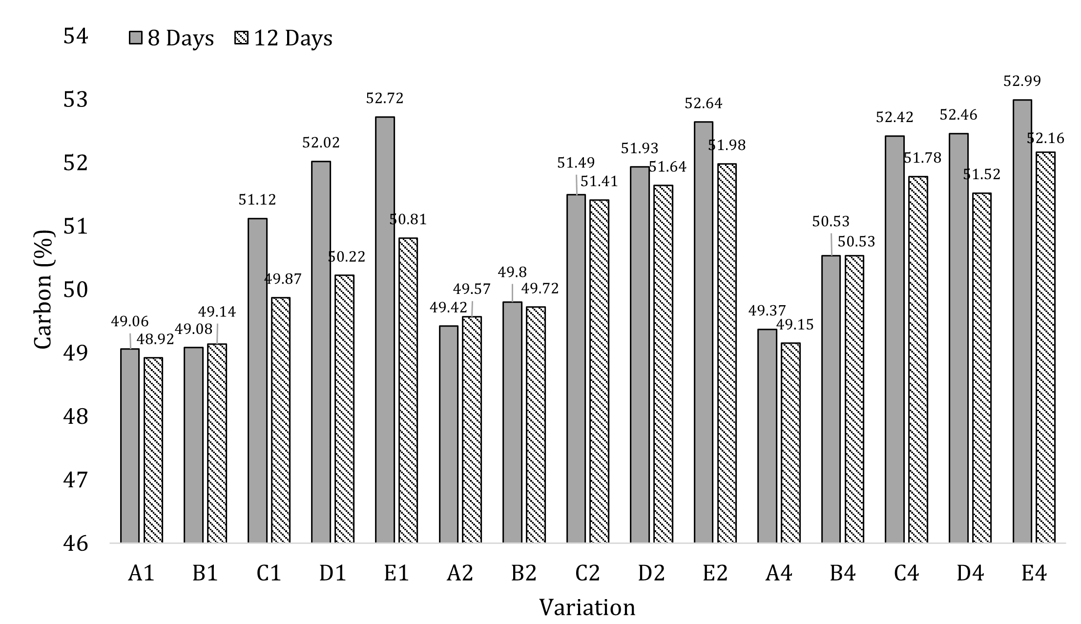Fruit and vegetable waste accounts for approximately 36% of total food waste in Indonesia. The accumulation of this waste in landfills contributes to increasing greenhouse gas (GHG) emissions and environmental pollution through leachate production. Treatment using Black Soldier Fly (BSF) larvae offers an efficient and sustainable alternative, with lower GHG emissions compared to composting or anaerobic digestion. This study aimed to evaluate the bioconversion efficiency of BSF larvae in reducing fruit and vegetable waste (specifically cabbage, water spinach, spinach, mustard greens, watermelon, melon, banana, and papaya) by analyzing the transformation of carbon (C) and nitrogen (N) into larval biomass and residue. Substrate compositions were varied with vegetable-to-fruit ratios of 90:10, 80:20, 70:30, and 60:40 (w/w), and larval densities of 1, 2, and 4 larvae/cm² were tested. Results showed that carbon and nitrogen conversion into larval biomass ranged from 7.92–17.59% and 4.96–21.69%, respectively, while conversion into residue ranged from 22.53–63.75% for carbon and 18.12–80.78% for nitrogen. The substrate with a 90:10 vegetable-to-fruit ratio produced the highest conversion efficiency. The values of Approximate Digestibility (AD), Efficiency of Conversion of Digested Food (ECD), and Efficiency of Conversion of Ingested Food (ECI) ranged from 32.44–74.71%, 17.68–42.96%, and 8.09–18.64%, respectively. The larval survival rates reached 95.61%. Furthermore, BSF bioconversion generated the lowest GHG emissions among all compared waste treatment methods, with a value of 102.27 g CO₂ eq/kg of waste. These findings demonstrate the significant potential of BSF larvae in managing fruit and vegetable waste while minimizing environmental impact, providing a foundation for further optimization in sustainable waste valorization systems.