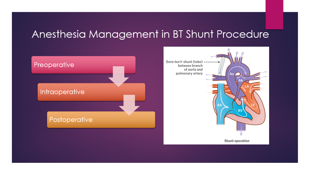 Conclusion: Understanding the physiology of heart defects and perioperative management determine the success of BT shunt surgery, reducing patient morbidity and mortality. Optimizing intraoperative and postoperative oxygen delivery with oxygenation targets PaO2 40-45 mmHg and saturation 70-80% reflects the balance of pulmonary blood flow and systemic blood flow (Qp:Qs=0.7-1.5:1).
