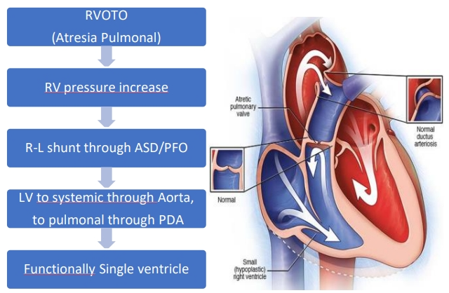 Case: A 10-month-old, 25-day-old boy, weight 9.93 kg, body length 72 cm, diagnosed with PA-IVS, restricted persistent foramen ovale (PFO), right ventricle hypoplastic, and turtuous patent ductus arteriosus (PDA), underwent BCPS, atrial septectomy, and PDA stent evacuation surgery. The patient underwent a PDA stenting and ballooning atrial septectomy (BAS) at 17 days of age at the cathlab. The patient was cyanotic with stable hemodynamics and a saturation of 72% preoperatively.