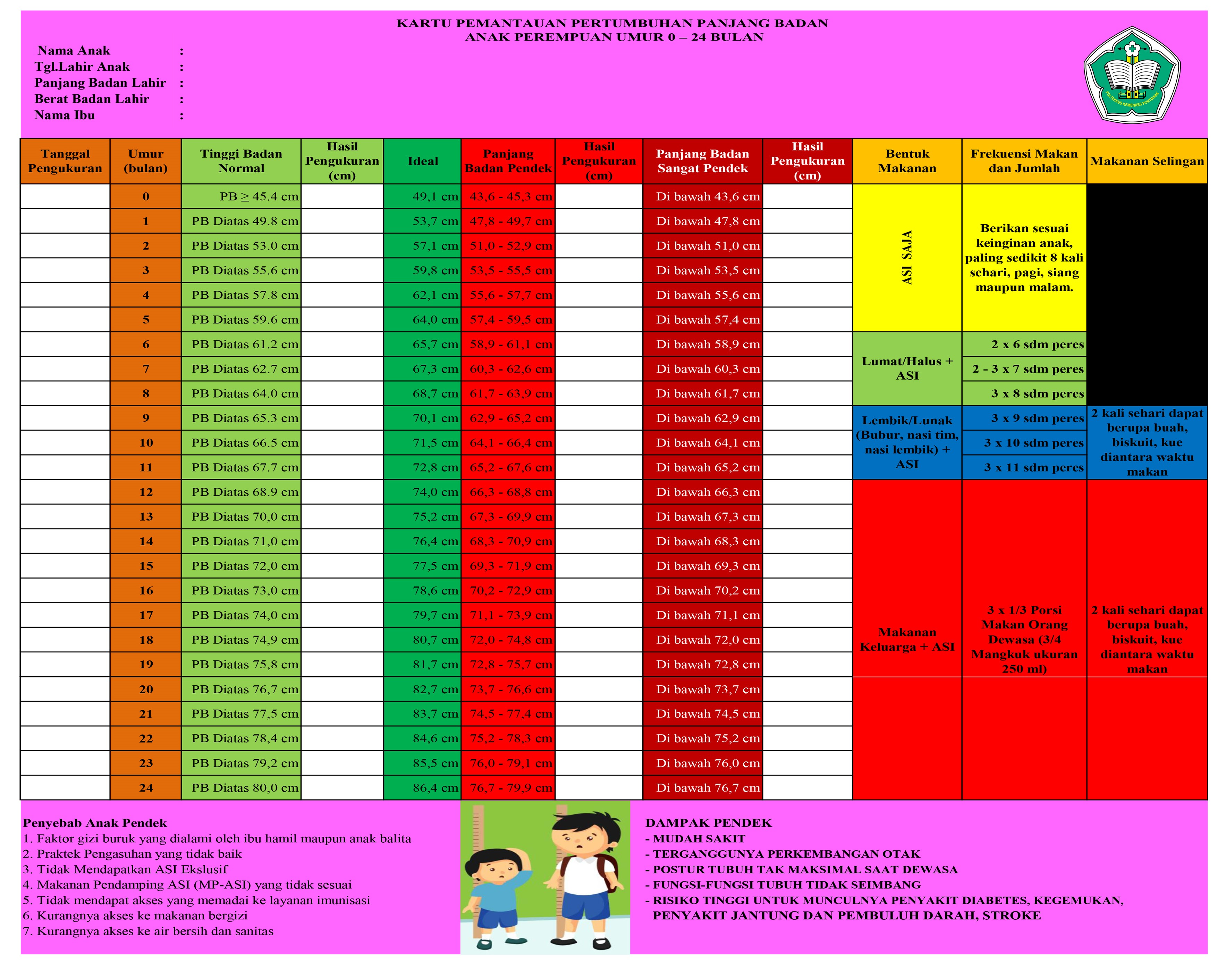 Results: The results showed that the group given the length growth card was the average value of LAZ before -3.12 ± 0.69 and after the intervention -2.98 ± 0.78 with an increase in the z-score of 0.14 ± 0.68, while the control group LAZ values before -2.68 ± 0.34 and after the intervention -2.62 ± 0.68 with an increase of 0.07 ± 0.633. Statistically with the Man Whitney Test showed no difference, but the change in the LAZ was higher in the group given the growth card compared to the control group.
