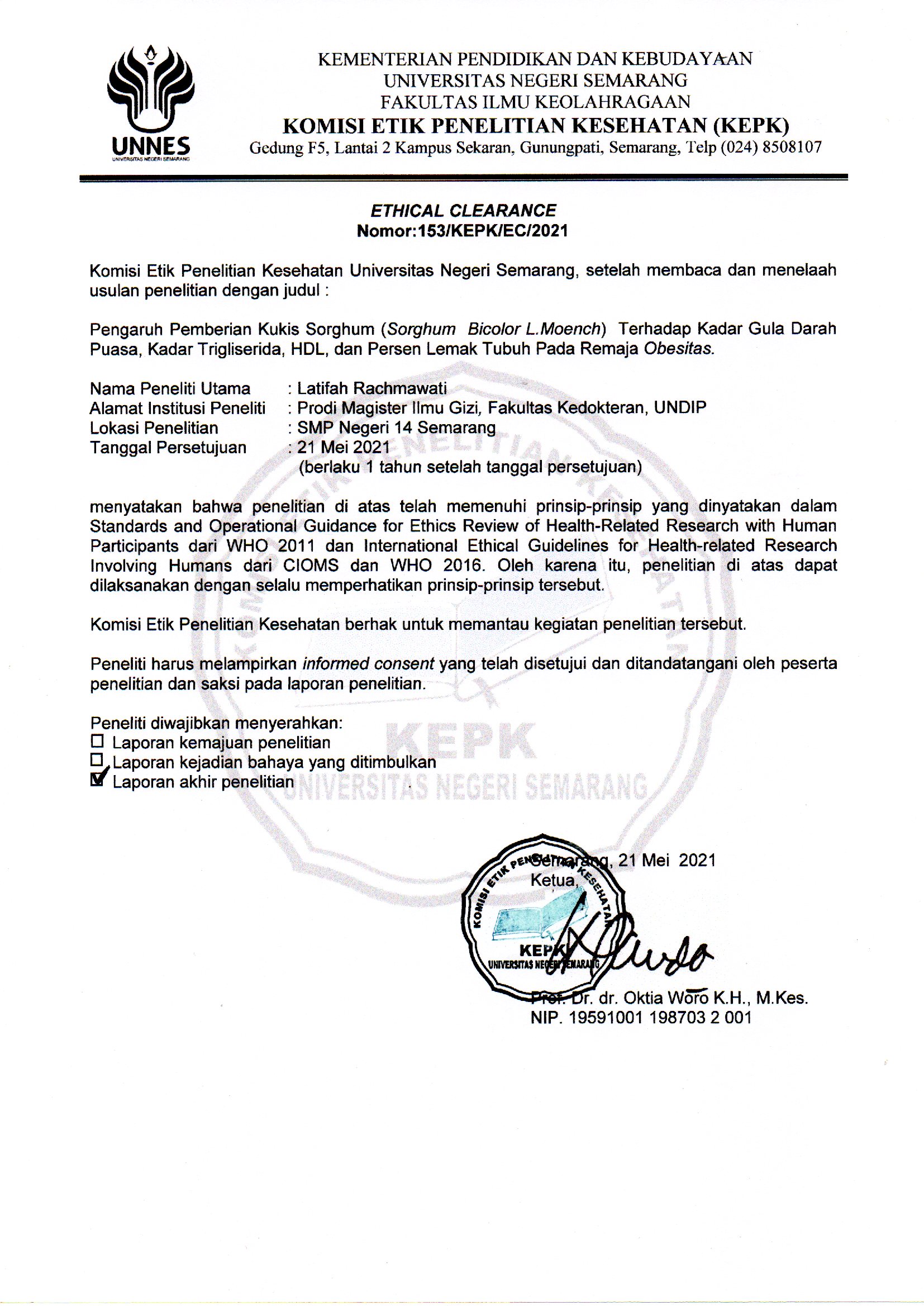 1Department of Nutrition Science, Faculty of Medicine, Universitas Diponegoro, Indonesia