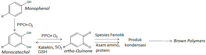 Figure 10. Oxidation reaction which produces kunion and hydrogen peroxide with catalyst Fe3+/Fe2+ and Cu2+/Cu+ [20].