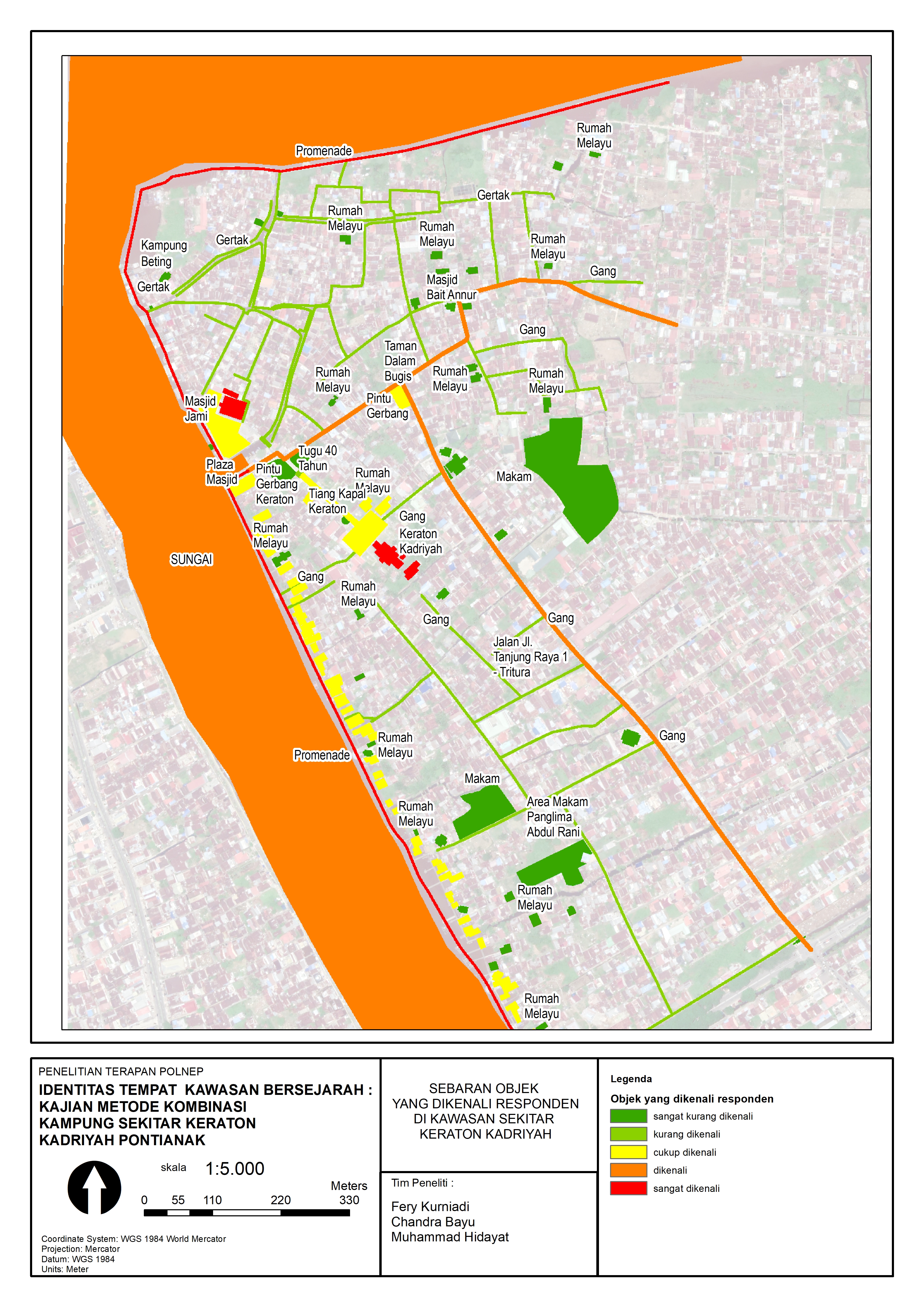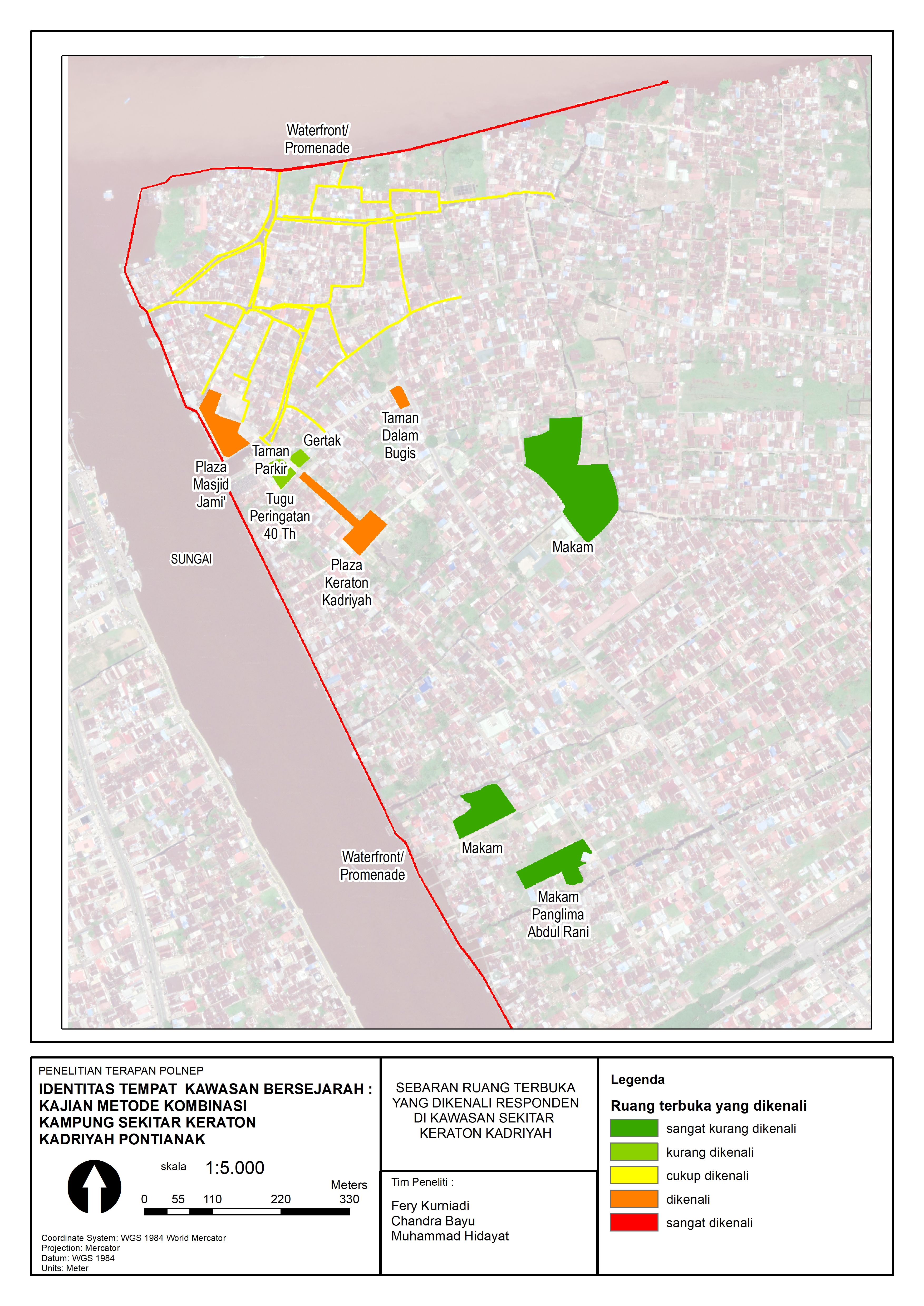 @article{pwk53453, author = {Fery Kurniadi and Chandra Bayu and Muhammad Hidayat}, title = {Identitas Tempat Kawasan Bersejarah: Kajian Metode Kombinasi Kampung Sekitar Keraton Kadriyah Pontianak}, journal = {Jurnal Pembangunan Wilayah dan Kota}, volume = {20}, number = {2}, year = {2024}, keywords = {Identitas Tempat, Kampung, Keraton Kadriyah}, abstract = {Kampung di sekitar Keraton Kadriyah merupakan simbol budaya yang harus dihormati nilai-nilainya. Pengembangan kawasan itu harus berjalan dan dilaksanakan dengan tidak melupakan ciri khas dan identitasnya. Tujuan dari penelitian ini adalah untuk menganalisis faktor-faktor yang membentuk identitas tempat dari kampung di sekitar keraton. Penelitian ini menggunakan metode kombinasi, yaitu menggunakan analisis faktor untuk menganalisis faktor-faktor yang membentuk identitas tempat, selanjutnya menggunakan hasil analisis spasial untuk memaknai dan memperjelas faktor-faktor pembentuk identitas tempat tersebut. Hasil penelitian menunjukkan enam (6) faktor yang mempengaruhi pembentukan identitas tempat kawasan kampung: pengalaman di jalur sirkulasi utama; suasana ruang publik; pengalaman psikologi dan atraksi budaya; objek yang menarik; pengalaman di ruang gang; langgam dan ornamen. }, issn = {2597-9272}, pages = {234--258} doi = {10.14710/pwk.v20i2.53453}, url = {https://ejournal.undip.ac.id/index.php/pwk/article/view/53453} }